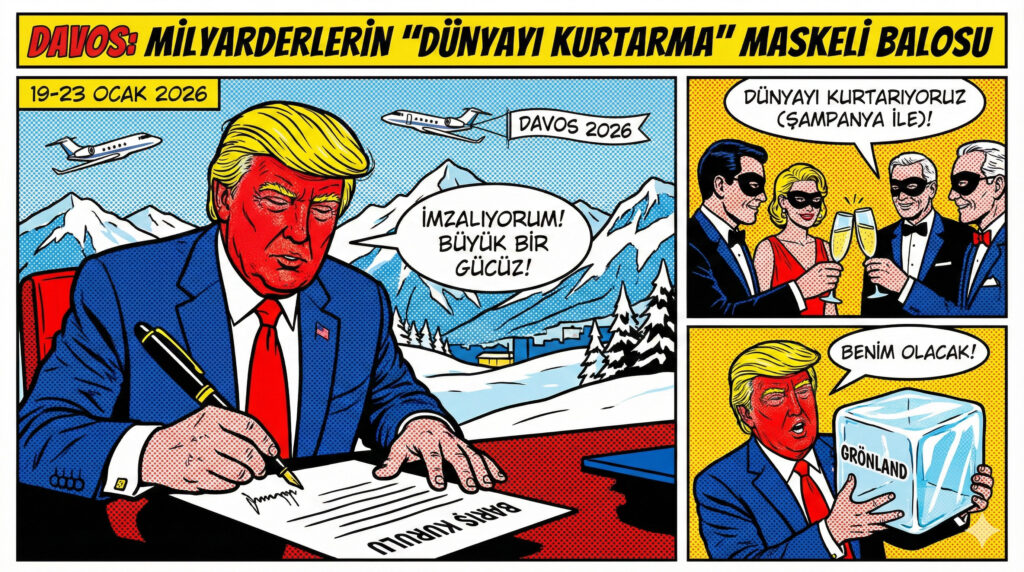 İsviçre’nin karlı tepelerinde, dünyanın en zengin %1’i, özel jetleriyle gelip iklim krizini nasıl çözeceklerini tartışırken bu yılın asıl yıldızı yine Donald Trump’tı. Trump, “Barış Kurulu” gibi kulağa oldukça ironik gelen bir belgeye imza atmakla kalmadı, Grönland konusundaki emlakçılık hayallerini de tazeledi. “Askeri güç kullanmayacağım ama biz büyük bir gücüz” diyerek Danimarka’ya göz kırpan Trump, adeta koca bir buz kütlesini Noel hediyesi gibi paketleme derdindeydi. Görünen o ki, 2026’da bile jeopolitik stratejimiz “Ben orayı istiyorum, çünkü neden olmasın?” seviyesinde seyrediyor.