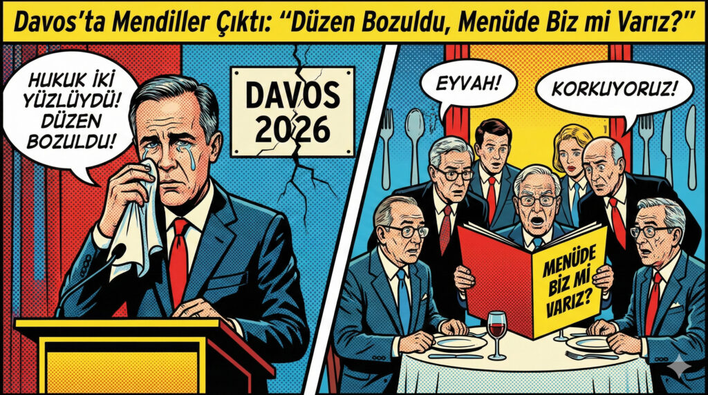 Dünyanın en zenginlerinin ve “karar vericilerinin” toplandığı Davos’ta ise hava, bir iflas masası kadar kasvetli. Kanada Başbakanı Mark Carney çıkmış, “Hukuk aslında hep iki yüzlüydü, biz de bunu biliyorduk ama işimize geliyordu” diye itiraf ediyor. Günaydın Sayın Carney! Liberal düzenin kurallarını sadece zayıflara işletirken her şey çok romantikti ama şimdi Trump ve diğer “imparatorluk heveslileri” oyunun kurallarını bozunca masada oturacak yer bulamama korkusu sarmış hepsini. “Masada olmazsak menüde oluruz” diyorlar. Merak etmeyin, o menüyü hazırlayan da yine sizdiniz; şimdi kendi sosunuzda pişme vakti.