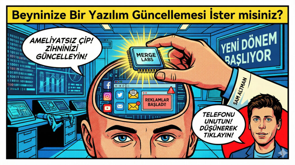 Veda etmeden önce Sam Altman’ın yeni projesine değinmezsek olmaz. “Merge Labs” ile artık beynimize çip takacaklarmış. Ameliyatsız, sadece düşünerek bilgisayar kullanacağız. Harika! WhatsApp gruplarındaki gereksiz mesajları artık sadece görmeyecek, doğrudan beynimizin içinde hissedeceğiz. Telefonu geride bırakacaklarmış; evet, doğrudan zihnimize reklam alabileceğimiz bir çağın kapılarını açıyorlar. Bill Gates’in yapamadığını Altman yapacak gibi duruyor.