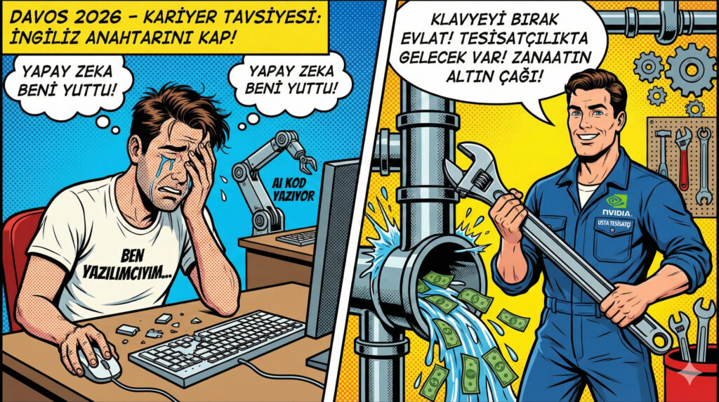 Eğer hala bir yazılımcıysanız ve bu satırları okuyabiliyorsanız, muhtemelen yapay zeka sizi henüz tamamen yutmamış demektir. İsviçre’nin karlı dağlarında toplanan “dünya efendilerinin” trajikomik hallerini bir kez daha yüzümüze çarptı. İşte o meşhur Davos sirkinden geriye kalanlar: