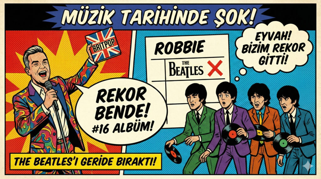 Müzik dünyası 23 Ocak’ta gelen ve 26-30 Ocak haftasında etkisi katlanarak artan tarihi bir rekorla sarsıldı. İngiliz pop ikonu Robbie Williams, 13. stüdyo albümü “BRITPOP” ile Birleşik Krallık listelerinde 16. kez bir numaraya yükseldi. Bu başarı ile Williams, efsanevi The Beatles grubunun (15 albüm) rekorunu kırarak İngiltere müzik tarihinde en çok bir numara albümü olan solo sanatçı unvanını pekiştirdi.