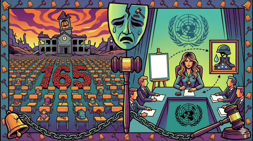Ancak bu trajedinin hemen ardından ABD First Lady’si Melania Trump’ın Birleşmiş Milletler Güvenlik Konseyi’nde “Çatışma Bölgelerindeki Çocukların Güvenliği” konulu bir oturuma başkanlık etmesi, diplomatik bir “absürtlük” olarak nitelendirildi. İran’ın BM Daimi Temsilcisi, bu durumu “çocuk katliamının yaşandığı gün çocuk hakları masalı anlatmak” olarak tanımlayarak sert tepki gösterdi.