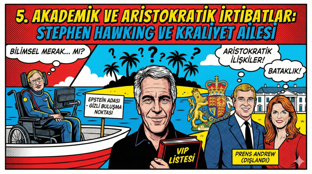 Skandalın en şaşırtıcı yönlerinden biri, dahi fizikçi Stephen Hawking gibi isimlerin de bu ağa dahil edilmiş olmasıdır. Hawking’in adaya götürülüp dalış yaptırılması gibi “iyi niyetli” görünen etkinliklerin ardında, Epstein’ın entelektüel dünyayı da kendi etki alanına alma çabası yatıyor. İngiliz Kraliyet Ailesi’nden Prens Andrew’un tamamen dışlanmasına yol açan süreç ve Norveç Kraliyet ailesi üyelerinin samimi yazışmaları, aristokrasinin bu “bataklıkta” nasıl bir rol oynadığını gözler önüne seriyor.
