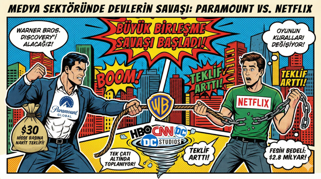 Haftanın en önemli ekonomi ve medya haberi, Paramount Global ve Warner Bros. Discovery (WBD) arasındaki birleşme görüşmelerindeki yeni hamle oldu. Paramount, WBD’yi satın almak için sunduğu teklifi hisse başına 30 dolar nakit olarak güncelledi ve Netflix ile yapılan anlaşmanın fesih bedeli olan 2,8 milyar doları ödemeyi taahhüt etti. Bu hamle, dijital yayıncılık dünyasında dengeleri tamamen değiştirebilecek devasa bir birleşmenin fitilini ateşledi. Sektör analistleri, bu satın almanın HBO, CNN ve DC Studios gibi dev markaların tek bir çatı altında toplanması anlamına geleceğini belirtiyor.