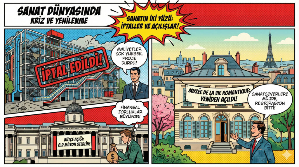 Sanat dünyası bu hafta hem hayal kırıklıklarını hem de geri dönüşleri konuştu. New Jersey’de açılması planlanan Centre Pompidou şubesinin orijinal projesinin maliyetler ve siyasi çekişmeler nedeniyle iptal edilmesinin ardından, projenin yeni bir finansal modelle (vergi indirimleri ve çok katlı kuleler projesiyle) canlandırılmasına dair tartışmalar sürdü. Öte yandan Paris’teki Musée de la Vie Romantique (Romantik Yaşam Müzesi), kapsamlı bir restorasyon sürecinin ardından 12 Şubat’ta kapılarını tekrar açarak sanatseverlere “hoş geldin” dedi. Londra Ulusal Galerisi’nin yaşadığı bütçe krizi ise kültürel kurumların sürdürülebilirliği konusundaki endişeleri bir kez daha gündeme taşıdı.