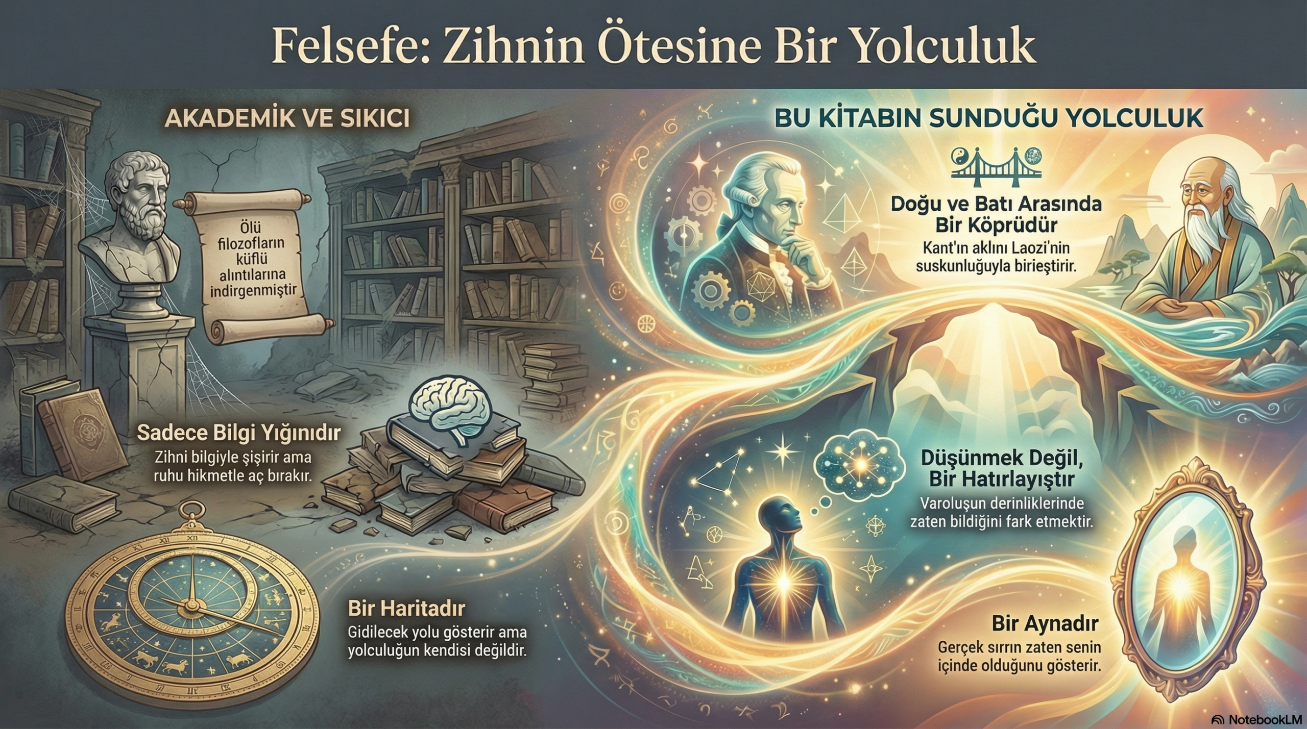 Metin, bu kitabın sadece Batı'nın Aristo ve Kant'larından ibaret olmadığını; aynı zamanda Laozi, Nagarjuna ve Upanişadlar gibi Doğu bilgelerinin soluğunu da taşıdığını belirtir. Benzer şekilde bu şarkı, Batı'nın popüler müzik formu ile Doğu'nun (Hint müziği) enstrümanlarını (sitar, tabla) ve felsefesini birleştirerek metindeki "Doğu ve Batı arasında bir köprü kurma çabası" ile birebir uyuşur.