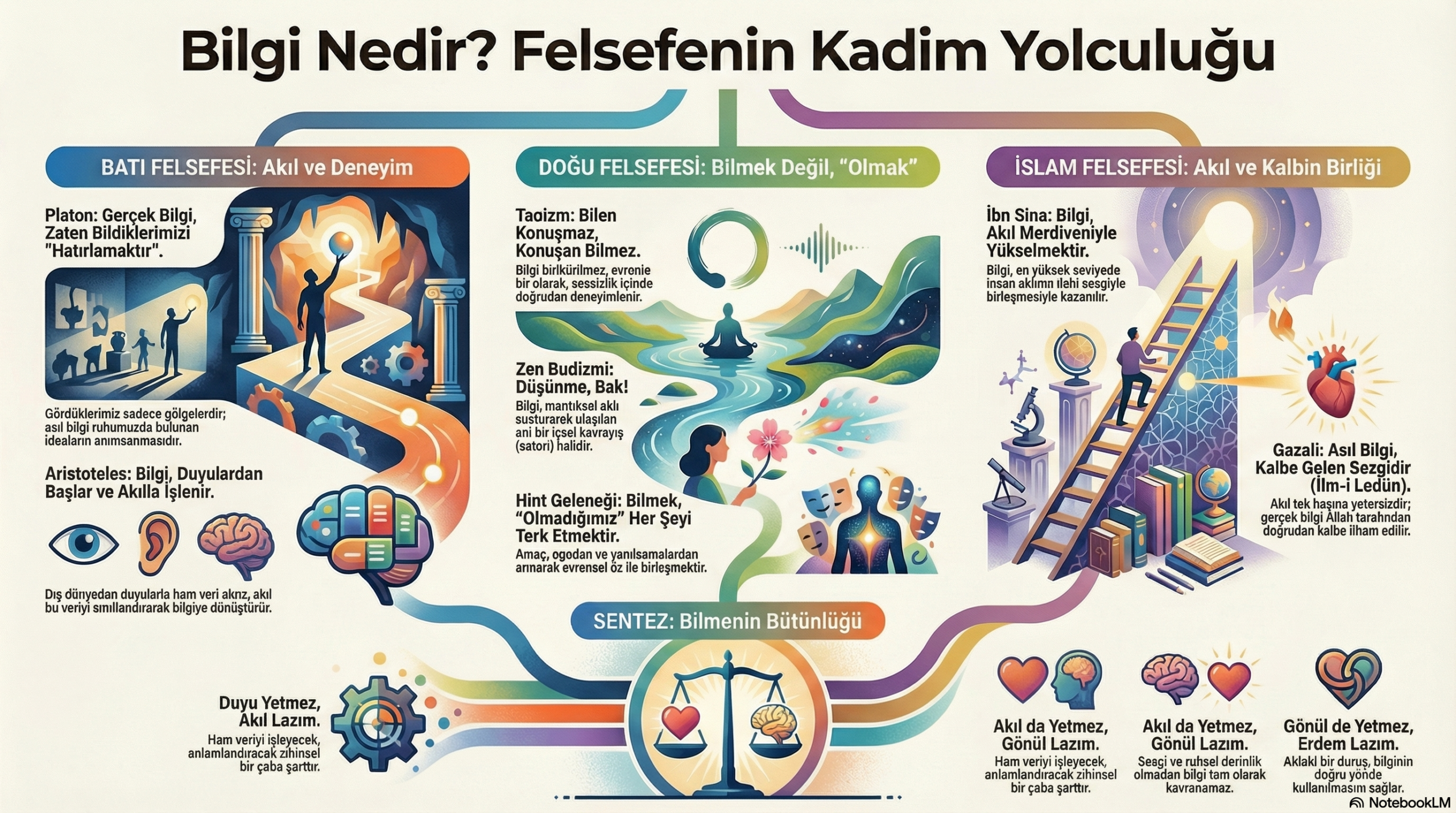 Tıpkı metnin Aristoteles’in mantık merdiveninden başlayıp İbn Sina’nın "Fa'al Akıl"ına ve Gazali’nin "kalp yangınına" uzanan yolculuğu gibi; bu şarkı da yüzeysel gürültüden (duyusal algıdan) derin bir sessizliğe (sezgisel bilgiye) geçişi anlatır.
