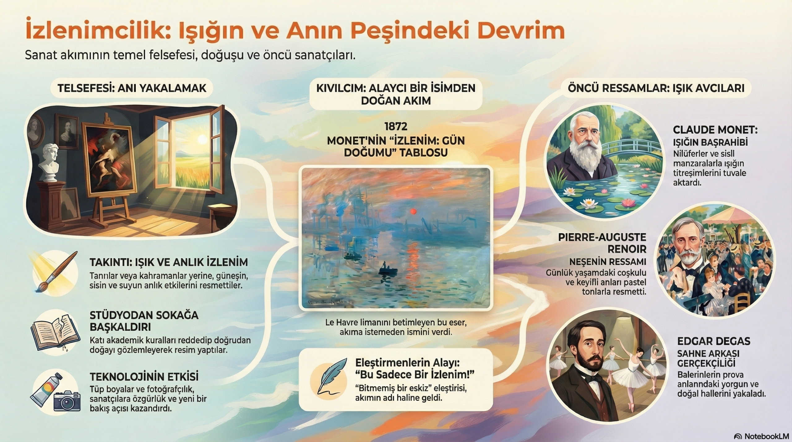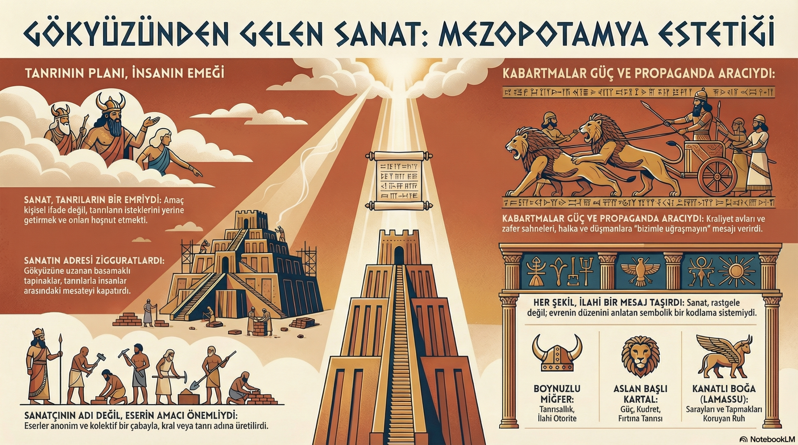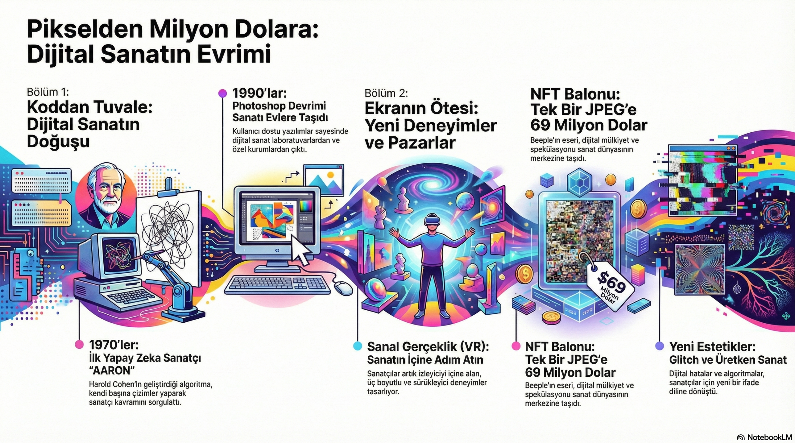 Metin, okuyucuyu "mağara resimlerinin görüldüğü o kadim dönemlerden, günümüzün dijital ve yapay zeka ile şekillenen sanat formlarına uzanan bir yolculuğa" davet etmektedir. Mussorgsky'nin eserindeki ünlü "Promenade" (Gezinti) teması, bir tablodan diğerine (yani bir dönemden diğerine) yürüyen izleyiciyi temsil eder. Bu tema, metinde vurgulanan sanatın "sabit prensiplerini" simgelerken, aradaki değişken bölümler sanatın "değişen yüzlerini" ifade eder. Eserin yapısı, metnin okuyucuyu "sanata dair kapsamlı... bir bakış açısı geliştirmeye davet" eden rehber niteliğiyle birebir uyuşur.