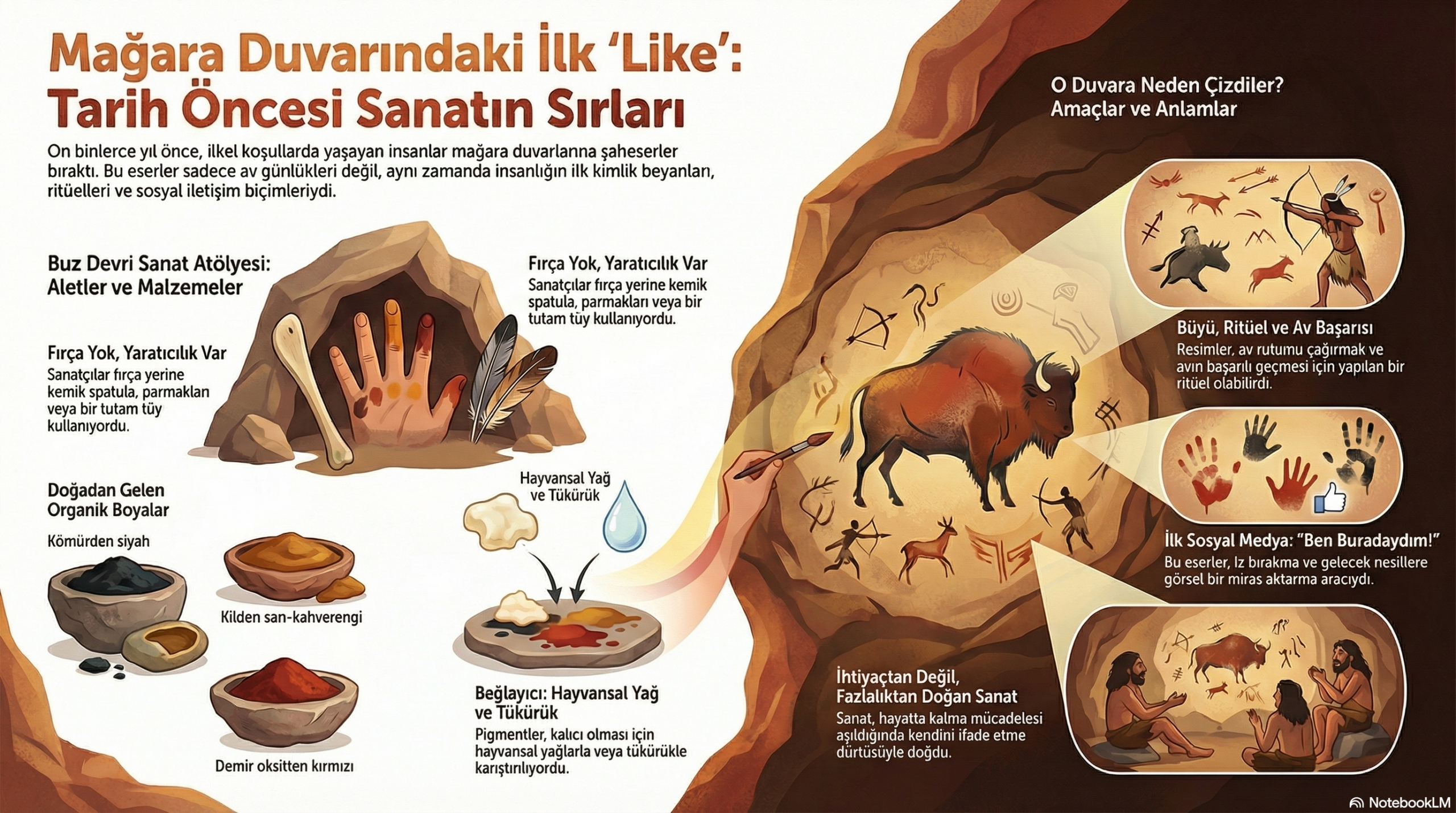 Kaynağınız, mağara resimlerinin sadece süs değil, başarılı bir av için yapılan "sihirli bir hazırlık" veya "ruh çağırma ritüeli" olabileceğini belirtir. Bahar Ayini de tam olarak pagan bir topluluğun doğayı uyandırmak ve hayatta kalmak için yaptığı ritüelleri anlatır. Metinde geçen "kan ve demir oksitten damıtılan kırmızılar" ve av peşindeki "yağ kokulu" atmosfer, eserin o çiğ, topraksı ve tekinsiz tınılarında hayat bulur.