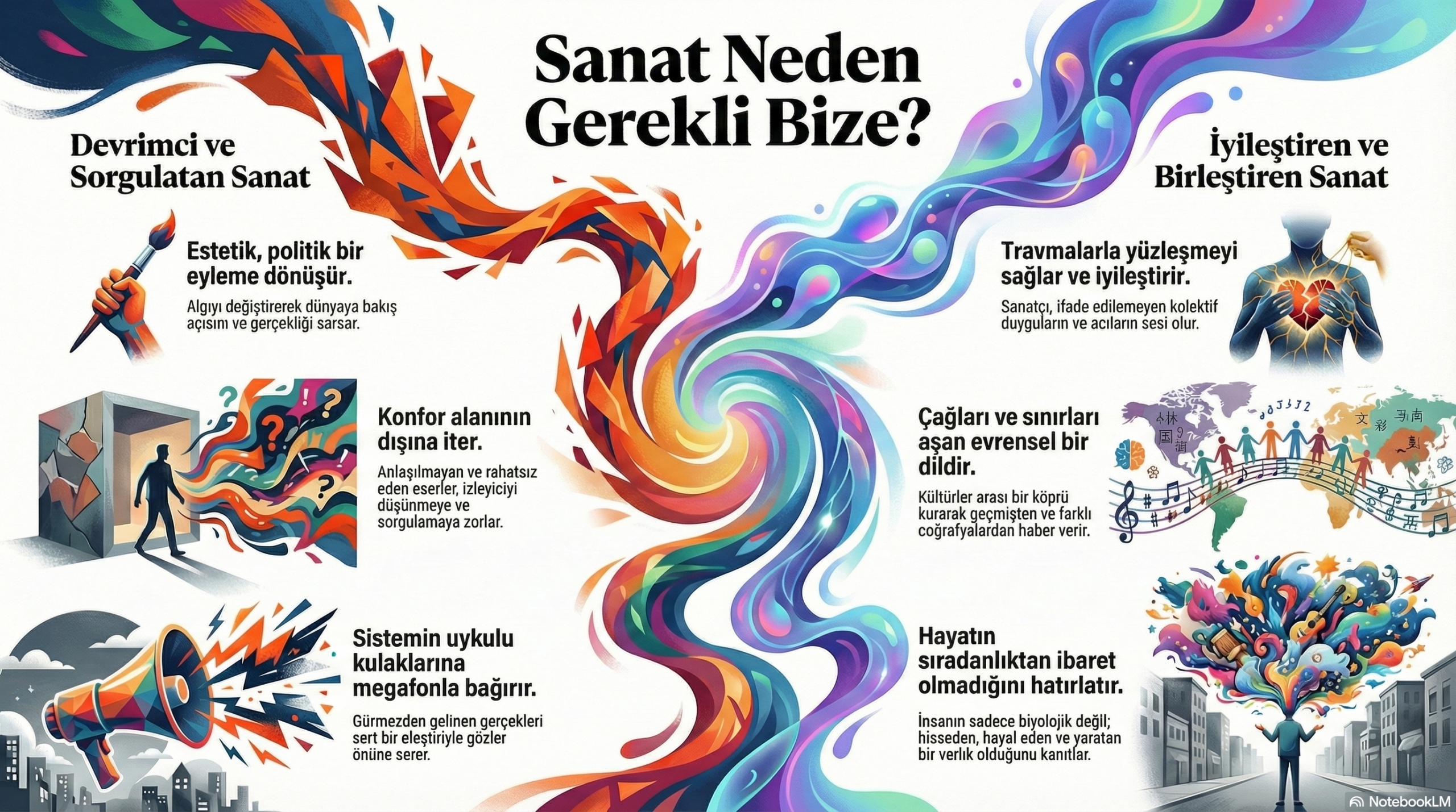 Sanatın "sistemin uykulu kulaklarına megafonla bağırması" metaforu, bu eserin tiz ve delici yapısında hayat bulur. Eser, sessizce duran bir süs değil, politik ve insani bir "barikattır".